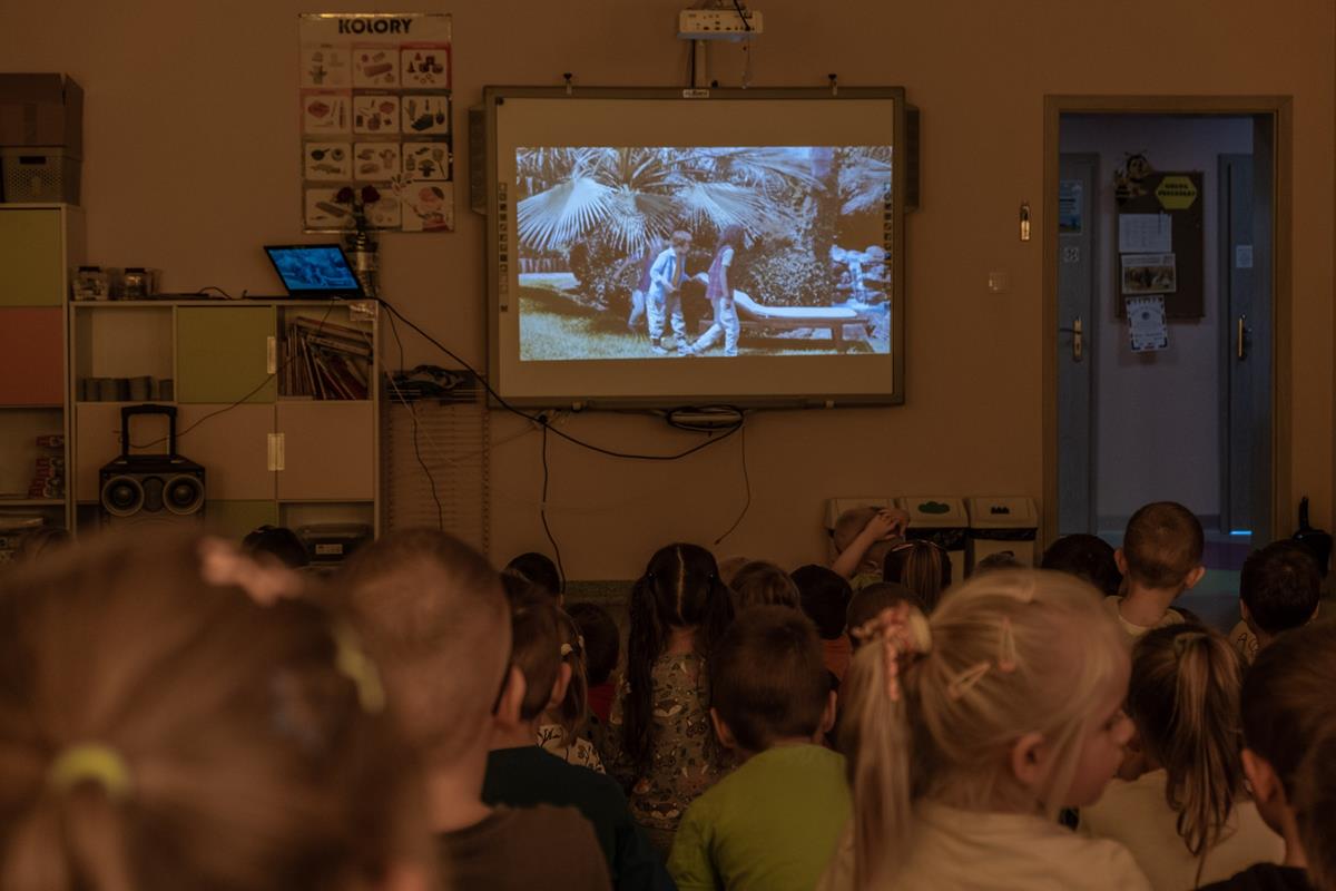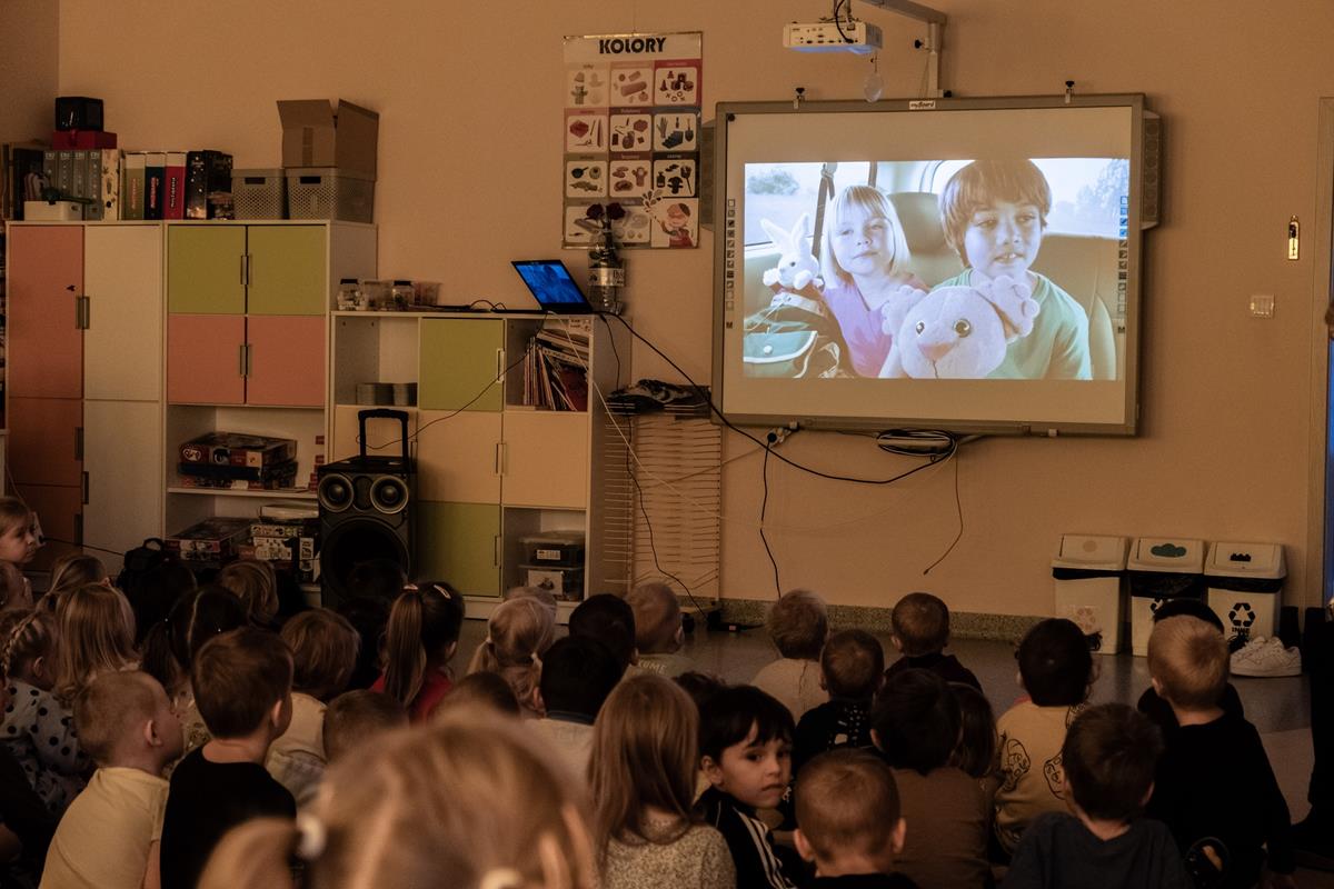 • dzieci oglądają wartościowe treści filmowe w wygodnym zaciszu własnego przedszkola,