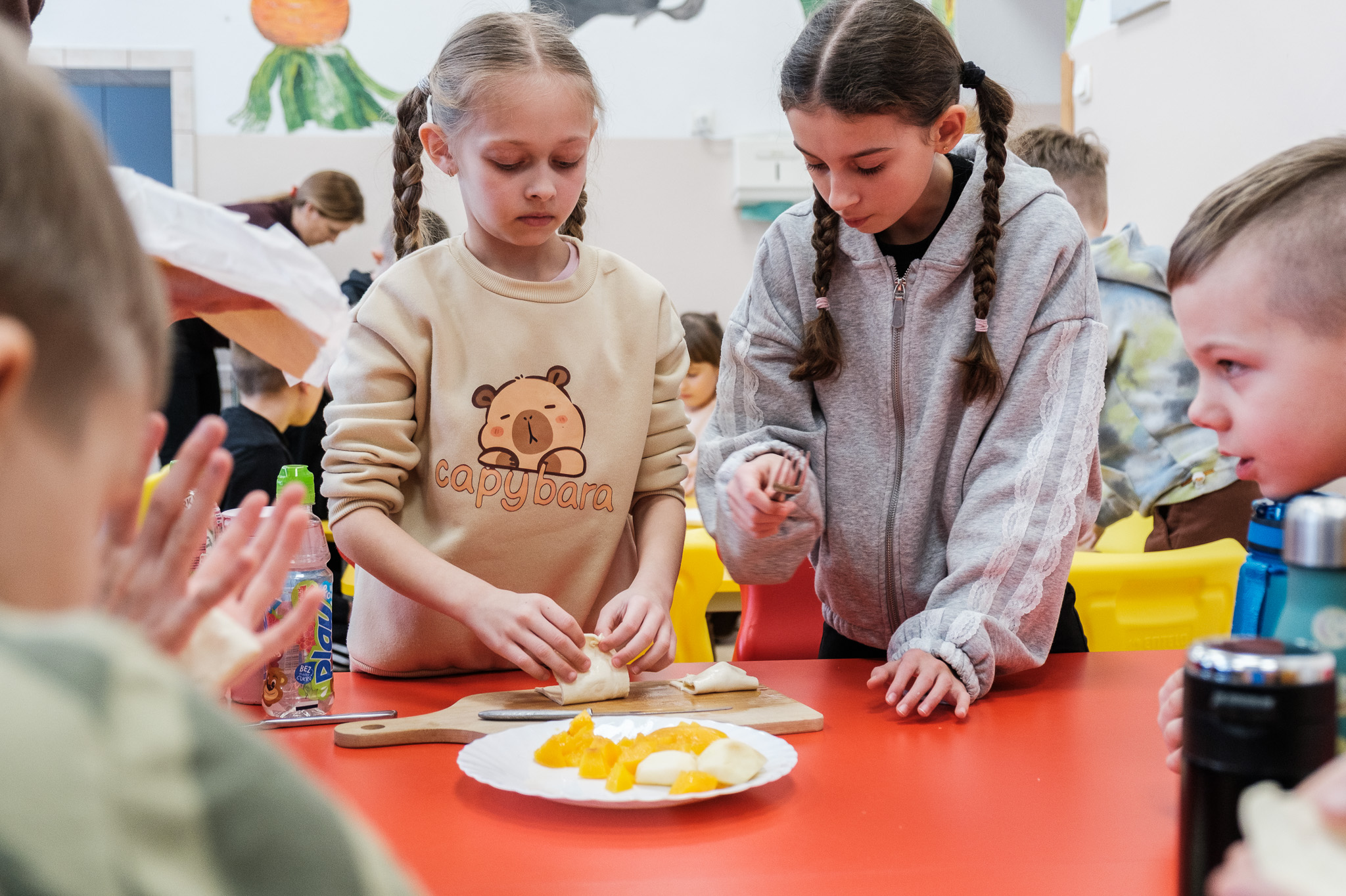 W trakcie dnia uczestnicy wzięli także udział w warsztatach kulinarnych, podczas których wspólnie z wychowawcami przygotowali francuskie ciasteczka z brzoskwinią i jabłkiem. Nie zabrakło również różnorodnych zabaw ruchowych i integracyjnych.