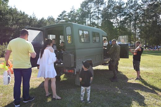Gminny Dzień Dziecka rozpoczęła Monika Swórska – Dyrektor PSP w Rudnikach oraz Sylwia Hubica – Dyrektor GOK w Międzyrzecu Podlaskim z/s w Wysokim, które przywitały zgromadzonych gości – Wójta Gminy Krzysztofa Adamowicza, radnych Jarosława Czapskiego, Edwarda Koprona i Piotra Siłaczuka, Zastępcę Wójta Gminy Michała Teofilskiego, a także dzieci wraz z rodzicami, omówiły pokrótce zasady dziecięcej zabawy oraz atrakcje do dyspozycji najmłodszych. Każdy mógł znaleźć coś dla siebie, a moc atrakcji zapewnili nie tylko organizatorzy, ale także nieocenieni partnerzy wydarzenia: I Warszawska Brygada Pancerna z Wesołej przygotowała wystawę broni, można było sprawdzić jak działa wykrywacz metalu, noktowizor oraz przejechać się po lesie wojskową terenówką. Bibliotekarki z Gminnej Biblioteki Publicznej w Międzyrzecu Podlaskim z/s w Wysokim przebrane za smerfy czytały dzieciom bajki, rozwiązywały zagadki i zachęcały do kolorowania obrazków. Ochotnicza Straż Pożarna „Stołpno” zapraszała do sprawdzenia co dzieje się z pasażerem podczas wypadku w symulatorze dachowania, przyjechali także swoim quadem i nowozakupioną karetką do ratownictwa wodnego. Centrum Aktywności Lokalnej udostępniło nam boisko do gry w piłkę nożną 1×1 oraz tarcze do spróbowania swoich sił w strzelaniu z łuku. Gminna Komisja ds. Rozwiązywania Problemów Alkoholowych w Międzyrzecu Podlaskim przygotowała tor z przeszkodami (bieg przez tunel, skok przez płotek, hydronetki), a w namiocie GOK w Międzyrzecu Podlaskim z/s w Wysokim odbywało się malowanie włosów, kolorowe warkoczyki, malowanie twarzy oraz skręcanie balonów dla najmłodszych. Wielką atrakcją były również dmuchańce, które cały czas były oblegane przez milusińskich. Stowarzyszenie Moja Gmina udostępniło bumper balls – dmuchane kule, w których w wyznaczonym miejscu można było w parach odbijać się o siebie i rywalizować bez szkód na ciele.