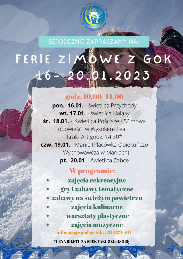 Z Nowym Rokiem ruszamy z nowymi działaniami. I choć pierwsze śniegi już stopniały, mamy przecieki, że zima jeszcze niedługo wróci! A że ferie za pasem, to z radością chcemy zaprosić na nie dzieci i młodzież z całej gminy! Przewidzieliśmy mnóstwo atrakcji. Dołączycie? Ulepmy wspólnie bałwana, takiego największego!