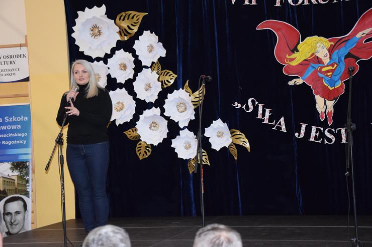 Już po raz siódmy mieszkanki Gminy Międzyrzec Podlaski spotkały się na „Forum Kobiet Gminy Międzyrzec Podlaski” tym razem w Szkole Podstawowej w Rogoźnicy. Tegoroczne wydarzenie odbyło się pod hasłem „Siła jest Kobietą”. Blisko 300 osób odwiedziło w niedzielę 8 marca Forum, by skorzystać z atrakcji przygotowanych przez Gminny Ośrodek Kultury w Międzyrzecu Podlaskim we współpracy z Gminną Biblioteką Publiczną z/s w Wysokim oraz Publiczną Szkołą Podstawową im. Janusza Kusocińskiego