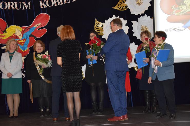Kolejnym, chyba najbardziej oczekiwanym punktem Forum Kobiet było rozstrzygnięcie konkursu „Kobieta Aktywna Gminy Międzyrzec Podlaski 2020”. Do tegorocznej edycji konkursu zgłoszonych było 11 Pań. Wszystkie laureatki zostały zaproszone na scenę oraz otrzymały kwiaty. Jury konkursu wyłoniło zwyciężczynie: