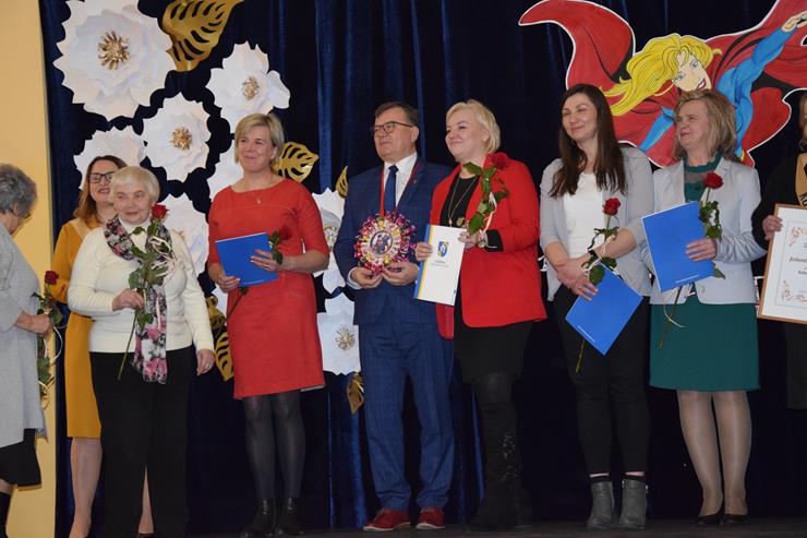 W tym wyjątkowym dniu Panie z zespołu „Sami Swoi” z Tłuśćca w imieniu wszystkich kobiet z terenu Gminy uhonorowały Orderem Supermena Anielskiej Cierpliwości Wójta Gminy Miedzyrzec Podlaski Krzysztofa Adamowicza za życzliwość, okazane serce oraz za anielską cierpliwość, którą często Panie wystawiają na próbę.