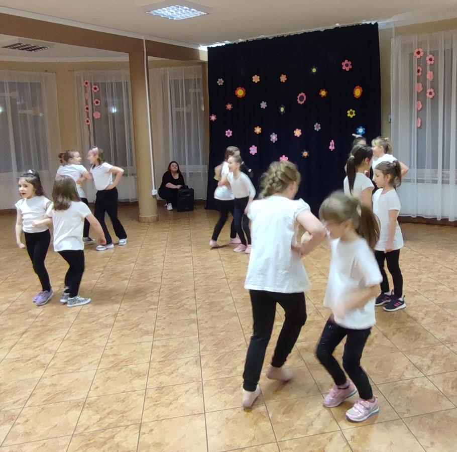 Prezentację rozpoczęła Dyrektor GOK Sylwia Hubica, witając zebranych rodziców. Obie sekcje Gminnej Grupy Tanecznej opracowały po 2 choreografie. Pokaz rozpoczął się prezentację starszych dziewczynek, które tańczyły m.in. do utworu Sanah. Młodsze dzieci zaprezentowały poleczkę oraz niezwykle barwny układ do utworu Heleny Majdaniec – Czarny Alibaba. Wszyscy mali i starsi tancerze otrzymali dyplomy oraz słodkie upominki z rąk Dyrektora GOK Sylwii Hubicy, która jednocześnie zaprosiła dzieci i rodziców na integracyjne ognisko. Na zakończenie radny gminy Jarosław Czapski wręczył Iwonie Basara-Teofilskiej kwiaty, dziękując tym samym w imieniu wszystkich rodziców za poświęcany na zajęciach czas. Kwiaty przekazały także dzieci.