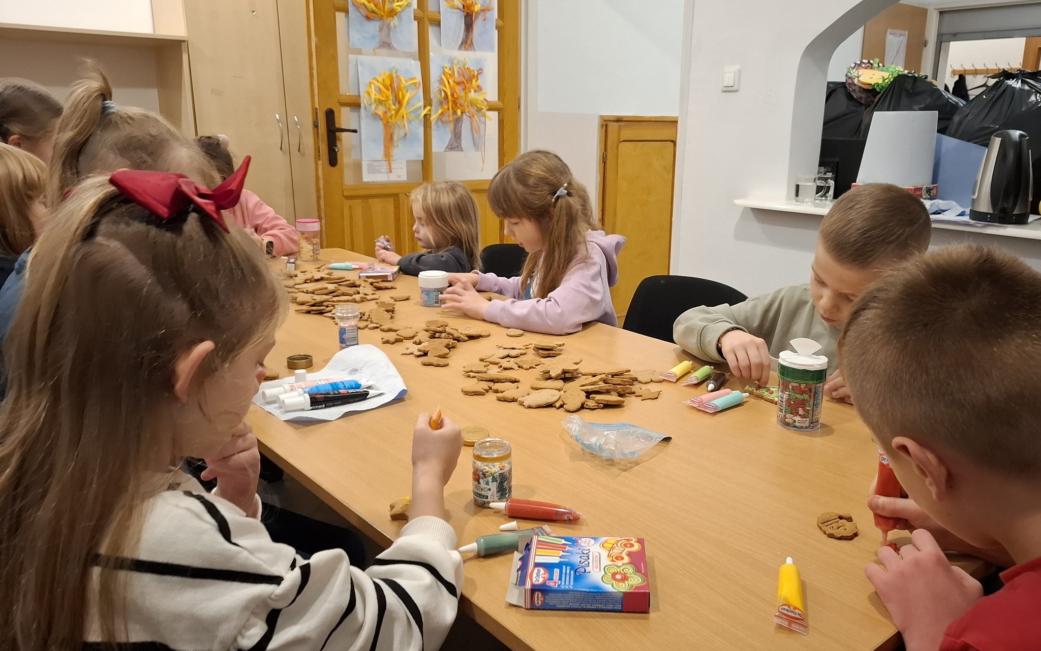 Dzieci z ogromnym zaangażowaniem przygotowywały i piekły pyszne, aromatyczne pierniczki, które potem z radością dekorowały.