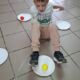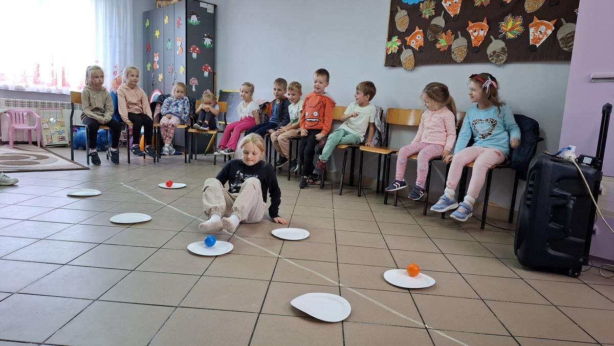Kolejną atrakcją była zabawa w rzucanie kasztanami „do celu”. Dzieci rywalizowały w tej grze, starając się trafić do wyznaczonego miejsca, co dostarczyło im mnóstwa radości i emocji. Czas spędzony na tej zabawie nie tylko rozweselił najmłodszych, ale także poprawił ich koordynację ruchową i koncentrację, a przy tym zapewnił świetną zabawę!