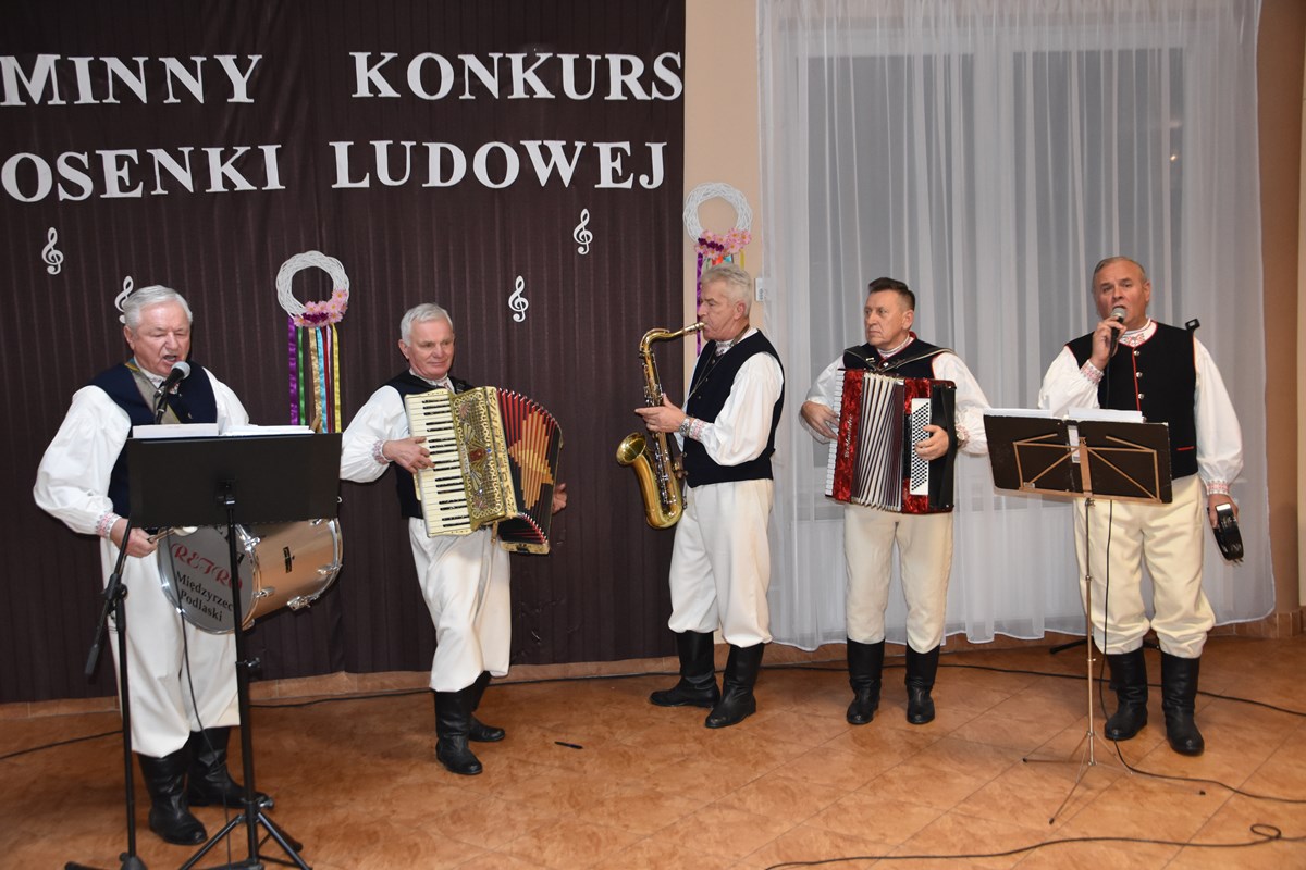 Główne cele konkursu to popularyzacja twórczości artystycznej oraz rozbudzenie talentów i zdolności inspirowanych tradycją ludową; prezentacja zespołów ludowych działających przy Gminnym Ośrodku Kultury w Międzyrzecu Podlaskim jak również ich bogatego repertuaru oraz kształtowanie umiejętności szlachetnego współzawodnictwa i współpracy. W konkursie wzięło udział 5 zespołów ludowych z terenu gminy. Na scenie kolejno pojawiały się zespoły: „Ale Baby” z kapelą z Berezy, „Echo” z Przychód, „Jutrzenka” z Rogoźnicy z kapelą „Retro”, „Leśne Echo” z Zaścianek, „Sami Swoi” z Tłuśćca. Każdy zespół wykonał dwie pieśni ludowe – jeden utwór a capella, drugi z akompaniamentem „na żywo”. Preferowane były pieśni tradycyjne z regionu, niekiedy już zapomniane. Jury oceniało dobór pieśni, znajomość tekstu, walory wokalne, interpretację utworu, ogólny wyraz artystyczny, prezentację sceniczną. Wykonania zespołów ludowych oceniała komisja konkursowa w składzie: Angelika Magier, Elżbieta Łaziuk, Andrzej Stępka. Inicjatywa spotkała się z szerokim gronem odbiorców, którzy chętnie wysłuchali prezentujących się zespołów.