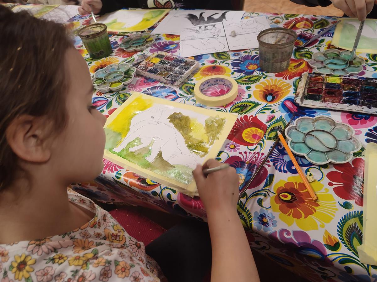 W czwartek 7 marca 2024 r. wystartowała grupa artystyczna malarstwa akwarelowego prowadzona przez doświadczoną w pracy z dziećmi malarkę Panią Urszulą Sawiuk z Jabłonia. Dzieci i młodzież na pierwszych zajęciach wykonała prace o tematyce wiosennej (motyle) na szablonach, wykorzystując przy tym różne techniki nanoszenia farb akwarelowych.