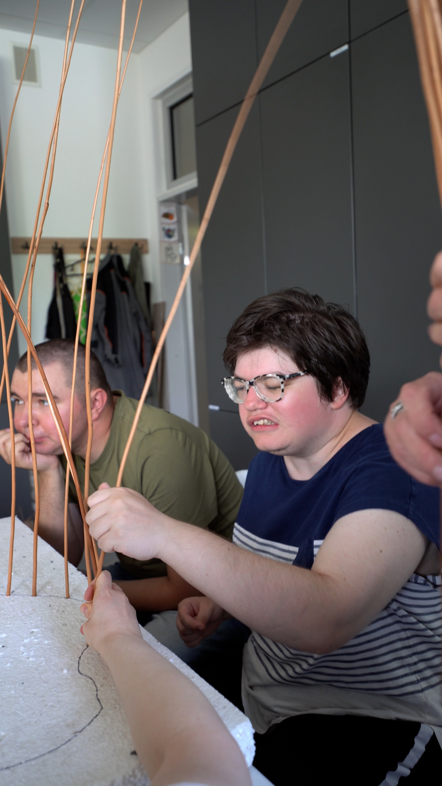 Myśląc nad włączeniem osób ze szczególnymi potrzebami do projektu „Dożynki u Bojarów Międzyrzeckich” skupiliśmy się nad tym, by ich uczestnictwo było dla nich samych komfortowe, możliwe do zrealizowania, ale jednak aktywne. I choć osobisty udział osób w spektrum autyzmu oraz osób z autyzmem w plenerowej imprezie masowej nie byłoby możliwe ze względu na wysoki poziom oddziaływania różnorodnych bodźców, które im nie sprzyjają (światło, dźwięk, poziom głośności, tłok itp.), to ich obecność uwidoczniła się dzięki powarsztatowej wystawie ich własnoręcznych prac w dniu imprezy. Sama realizacja warsztatów wikliniarskich przyczyniła się do ćwiczeń manualnych, wypełniając codzienność uczestników zajęć we Wspólnym Świecie ciekawymi działaniami rękodzielniczymi i artystycznymi.