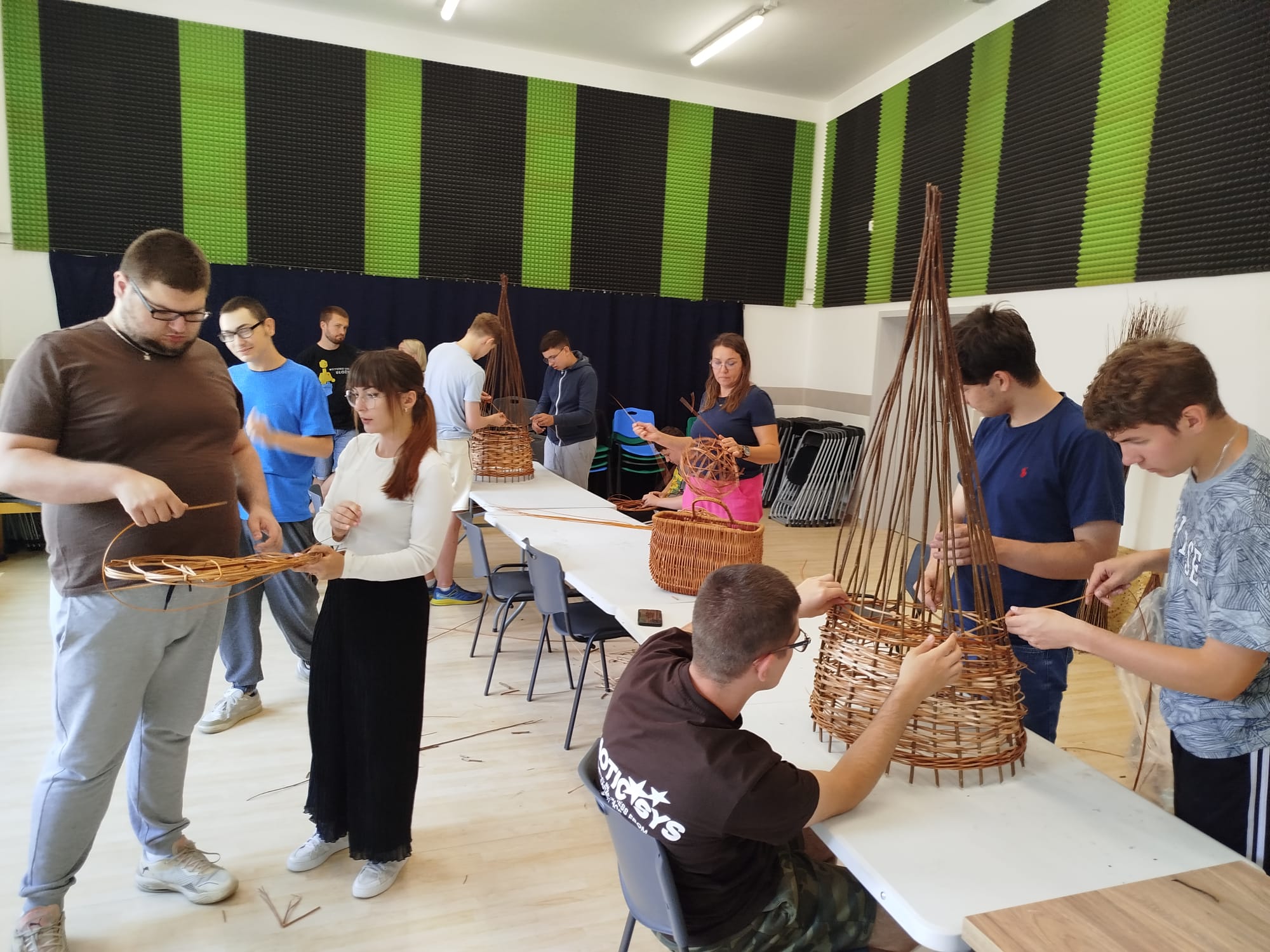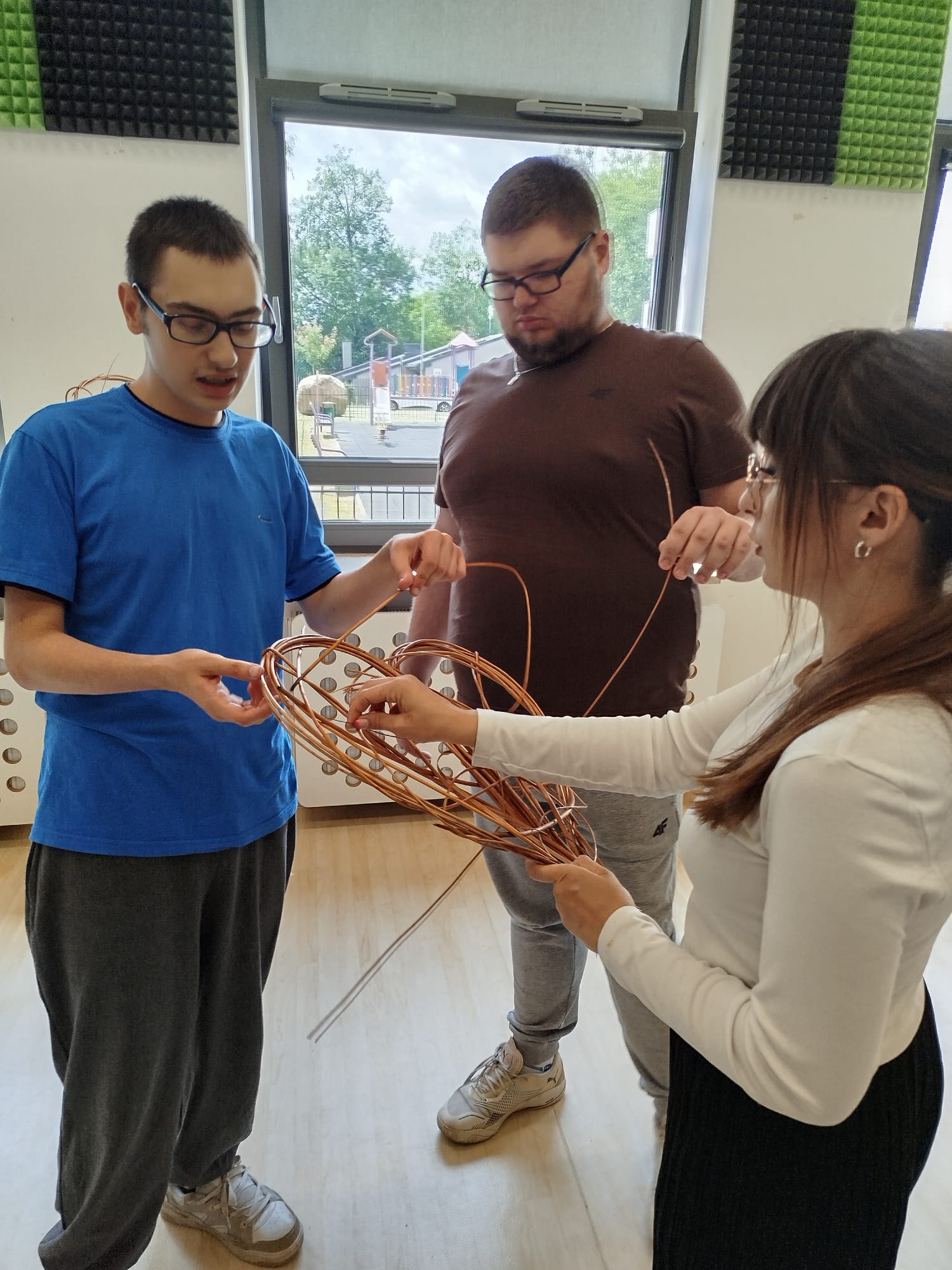 W ramach projektu „Dożynki u Bojarów Międzyrzeckich” realizowanego z programu EtnoPolska. Edycja 2025 Narodowego Centrum Kultury, zaprosiliśmy do współpracy i artystycznych działań osoby neuroróżnorodne uczestniczące na co dzień na zajęcia organizowane przez Stowarzyszenie Pomocy Młodzieży i Dzieciom Autystycznym oraz Młodzieży i Dzieciom o Podobnych Zaburzeniach „Wspólny Świat” w Białej Podlaskiej. W ramach pozyskanego dofinansowania udało nam się włączyć uczestników „Wspólnego Świata” do współtworzenia tego pięknego wydarzenia, jakim będą Dożynki u Bojarów Międzyrzeckich w Łuniewie. Na zaproszenie Gminnego Ośrodka Kultury warsztaty plecionkarskie z wikliny we Wspólnym Świecie przeprowadziła pani Karolina Karpińska (Karpińska ART) z Lublina. Warsztaty odbywały się 18 i 25 czerwca b.r. w siedzibie Stowarzyszenia, a w ich trakcie powstały piękne prace, które zostaną zaprezentowane w formie wystawy na tegorocznych Dożynkach u Bojarów Międzyrzeckich w Łuniewie.