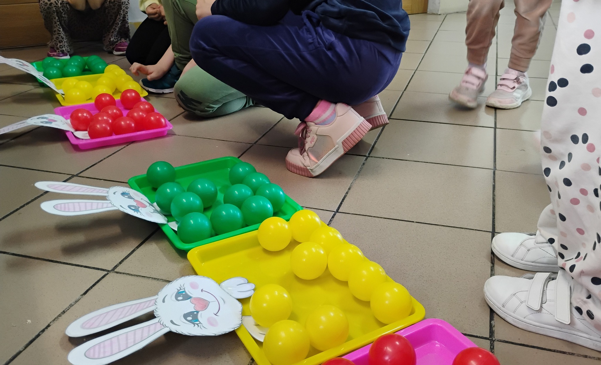 Uczestnicy brali udział w różnorodnych zabawach i konkurencjach, takich jak tor przeszkód, rzuty do celu, zabawy z króliczymi uszami czy kolorowe wyścigi z jajkami. Każda z aktywności sprzyjała integracji oraz rozwijaniu sprawności ruchowej.